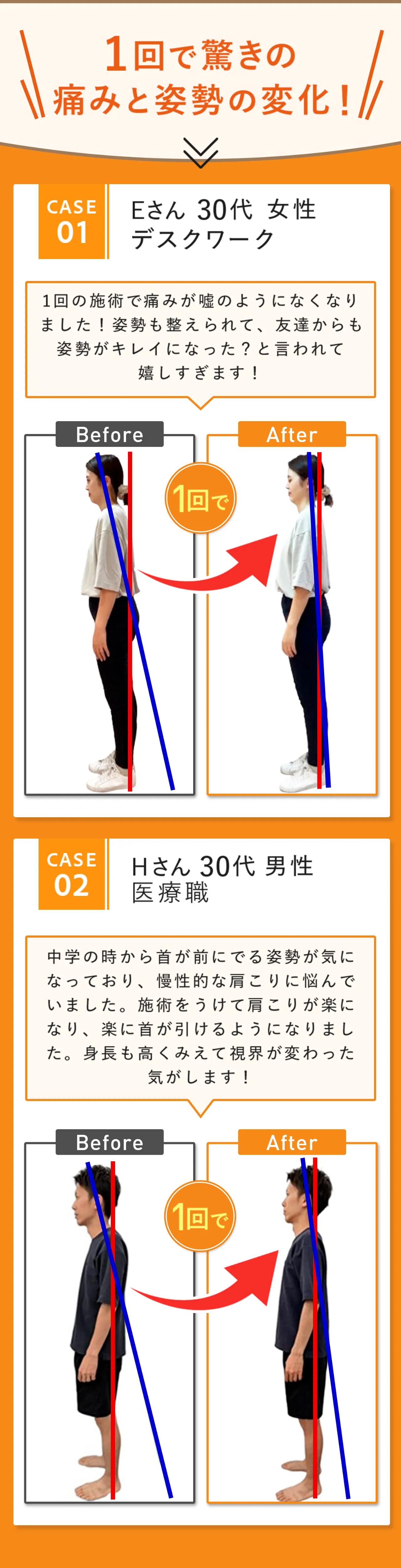 A.初回から姿勢の変化を感じる方が多いです。